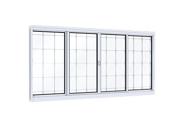 Janela de Correr Central 2flS Móveis e 2 Fixas Com Grade Quadrada. Aço cor branca. Lucasa Facilità.