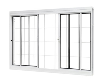 Janela de Correr Central c/ grade quadriculada. Ramassol UnicSol