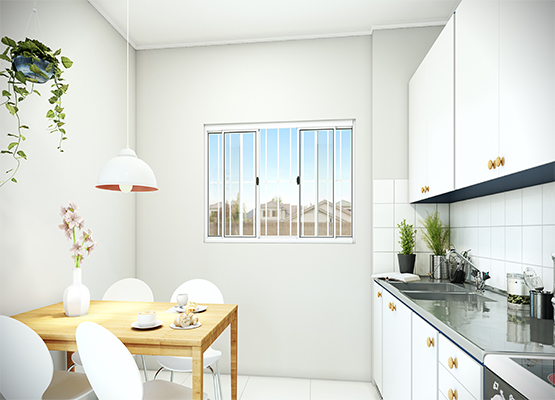 Riobras Alumínio - tecnologia para durar. Produto de alumínio para quem busca economia, mas não abre mão de qualidade. Firme e resistente, feito em processo produtivo exclusivo e inovador. Com grade e vidro liso incolor já instalado.