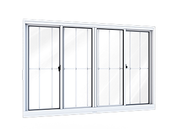 Janela de correr de alumínio 4 folhas móveis com grade. Ullian Riobras Alumínio