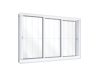 Janela de correr lateral de alumínio com 3fls móveis com grade. Lucasa Alumínio