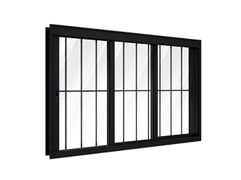 Janela de correr lateral de aço com 1 folha móvel e 1 folha fixa com grade quadrada. Ullian Riobras Aço Pronto
