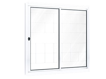 Janela de correr lateral com grade quadriculada. Ramassol QualitySol