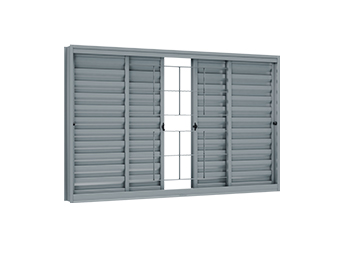 Janela Veneziana de Aço sem Folha p/ vidro com grade. 2 fls móveis e 2 fixas. Ullian Riobras Aço