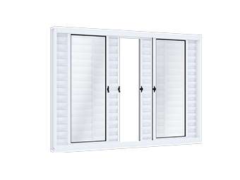 Janela veneziana de correr central de aço sem grade. 4 fls móveis e 2 fixas. Ullian Riobras Aço Pronto