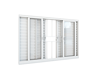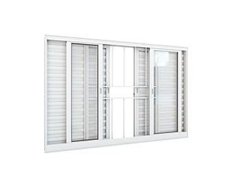 Janela veneziana de correr central de alumínio 4fls móveis e 2 fixas. Lucasa Alumínio