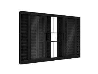 Janela Veneziana Correr Central-4F Móveis-2F-Fixas. Grade Quadrada. Aço cor preta. Lucasa-Facilita