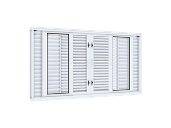 Janela veneziana de correr central flex de aço 4 fls móveis e 2 fixas, sem grade. Riobras Aço Pronto