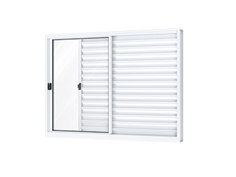 Janela veneziana de correr lateral de alumínio 2 folhas móveis e 1 fixa sem grade. Ullian Riobras Alumínio