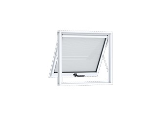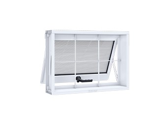 Janela maxim-ar de aço pintado de branco, grade quadrada, com...
