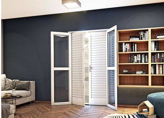 Porta de Correr Balcão Lateral Flex 2fls Móveis e 1 Fixa. Aço cor branca. Lucasa Facilità.