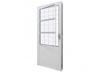 Porta de Abrir com postigo e com grade quadriculada, de aço pintado na cor branco e vidros colocados. Produtos em aço galvanizado (Não enferruja*) e prontos para a instalação em áreas comerciais e residenciais. Proporcionam a entrada de luz natural ao ambiente e assegura maior resistência a impactos na base da porta. O postigo possibilita a ventilação ou arejamento do ambiente mesmo com a porta fechada. Ramassol QualitySol.