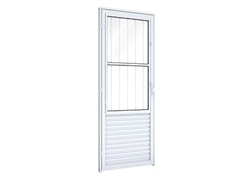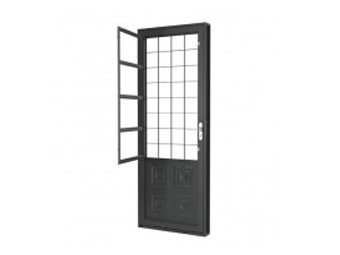 Porta social de abrir com postigo e grade quadrada. Domarco Fortline