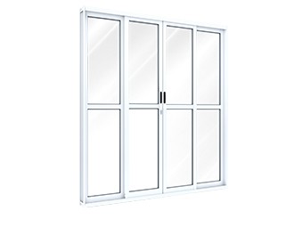 Porta de correr central com travessa 2 folhas móveis e 2 fixas. Ullian Riobras Alumínio