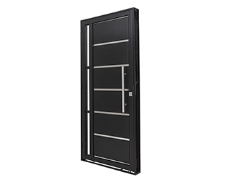 Porta de abrir lambri com friso e vidro lateral. Aço cor preta. Ramassol Master