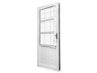 Porta de abrir com postigo e grade quadrada. Ramassol PraticSol