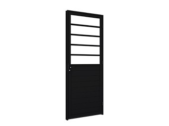 Porta de abrir lambri com friso e vidro lateral. Aço cor preta. Ramassol Master