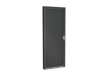 Porta de alumínio cor preta de giro mista com lambri com vidro. Lucasa Ideale