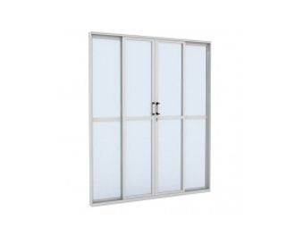 Porta de Correr 4 folhas - 2 folhas fixas e 2 folhas móveis em alumínio. Ramassol Cristal