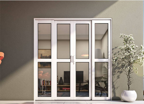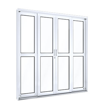 Porta de Correr Central Com Vidro 2fls Móveis e 2 Fixas. Aço cor branca. Lucasa Facilità.