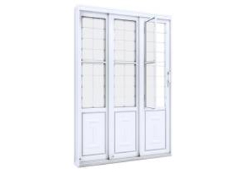 Porta de correr lateral 2 fls móveis e 1 fixa, de aço com postigo grade quadrada. Ullian Riobras Aço Pronto