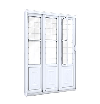 Porta de Correr Lateral Com Postigo 2fls Móveis e 1 Fixa e Grade Quadrada. Aço cor branca. Lucasa Facilità