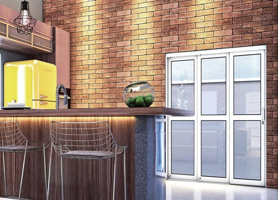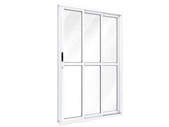 Porta de Correr Lateral Com Vidro 2fls Móveis e 1 Fixa. Aço cor branca. Lucasa Facilità.