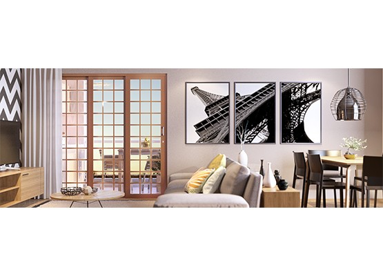 As portas e janelas RIOBRAS, recebem a pintura de proteção eletrostática com tinta líquida (ELETROPINTURA ULLIAN), que aumenta a resistência do aço contra a ação do tempo. Para o acabamento, você pode usar a criatividade, e as possibilidades se tornam infinitas. Trilho inferior em aço inox.