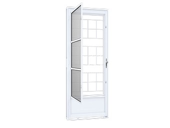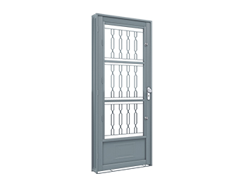 Porta de Abrir c/ postigo e c/ grade quadriculada. Ramassol Romex