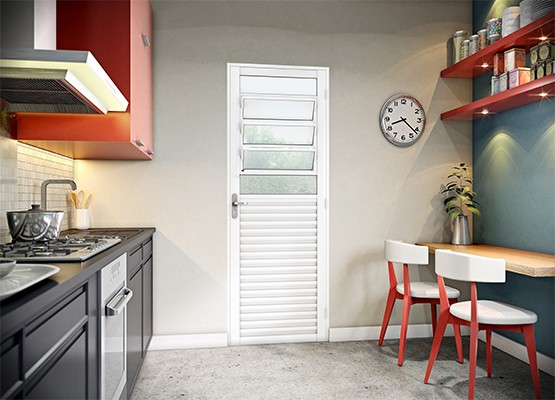 Porta alumínio de giro lambri mista com basculante vidro mini boreal. Lucasa Alumínio