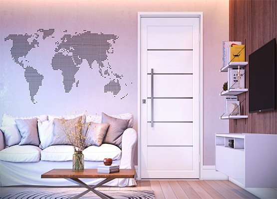 Porta de giro lambri de alumínio sem friso com puxador de 80cm. Lucasa Alumínio