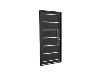 Porta de Alumínio Cor Preta de Giro Lambri Com Friso Com Visor Com Puxador de 60CM em Alumínio. Lucasa Ideale
