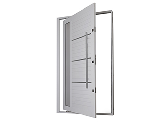 Porta de Alumínio Pivotante Lambri Com Friso Com Puxador 80CM Em Aço Inox. Lucasa Ideale