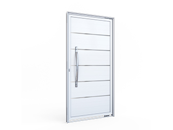 Porta de Alumínio Pivotante Lambri Com Friso Com Puxador 80CM Em Aço Inox. Lucasa Ideale