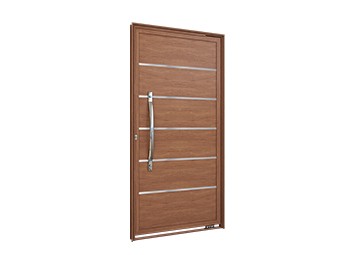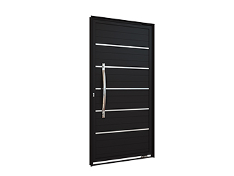 Porta social de alumínio com puxador em alumínio de 80 cm. Beleza e sofisticação para a entrada do seu imóvel. Cores: preta, branca e madeira