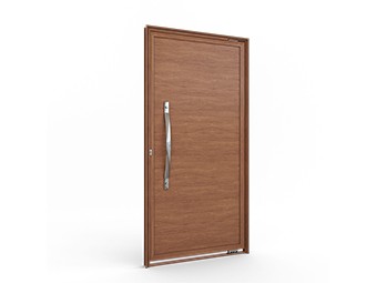 Porta social de alumínio com puxador em alumínio de 80 cm. Beleza e sofisticação para a entrada do seu imóvel. Cores: madeira, preta e branca