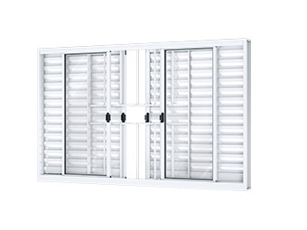Janela veneziana de correr central de alumínio 4 folhas móveis e 2 fixas sem grade. Ullian Riobras Alumínio