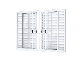 Janela veneziana de correr central de aço c/ grade quadrada. 4 fls móveis e 2 fixas - Ullian Riobras Aço Pronto