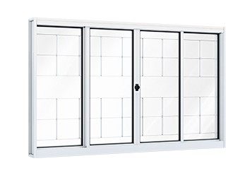 Janela Correr Central 2 Folhas Móveis 2 Folhas Fixas Grade Quadrada-Ullian Riobras Aço Pronto