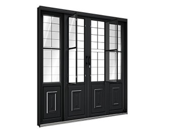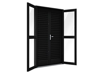 Porta balcão de giro 4 folhas. Aço cor preta. Lucasa Facilità.