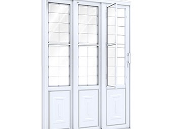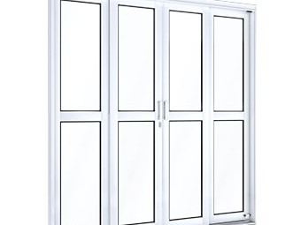 Porta de Correr Central Com Vidro 2fls Móveis e 2 Fixas. Aço cor branca. Lucasa Facilità.