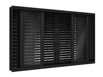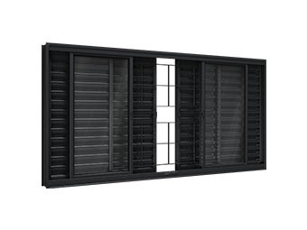 Janela Veneziana Correr Central-4F Móveis-2F-Fixas. Grade Quadrada. Aço cor preta. Lucasa-Facilita