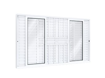 Janela veneziana em alumínio de correr central 4fls móveis e 2 fixas com grade. Lucasa Eccellente