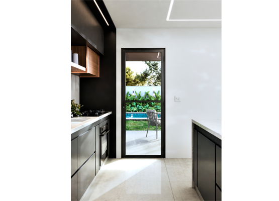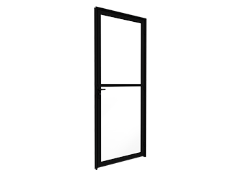 Porta de alumínio cor preta de giro vidro com travessa. Lucasa Ideale
